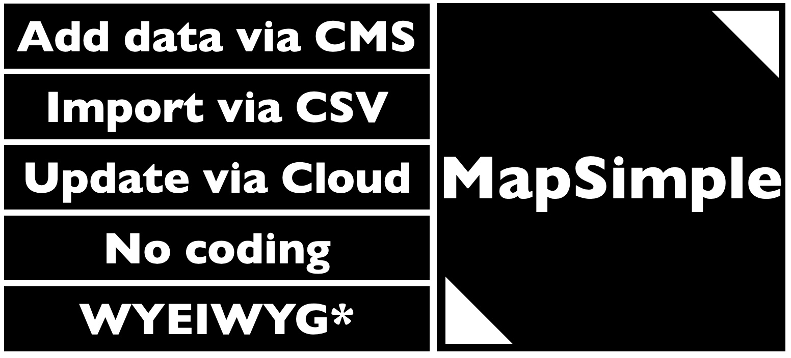 There are multiple ways to get your geographical data into MapSimple, soon we will support four different methods: